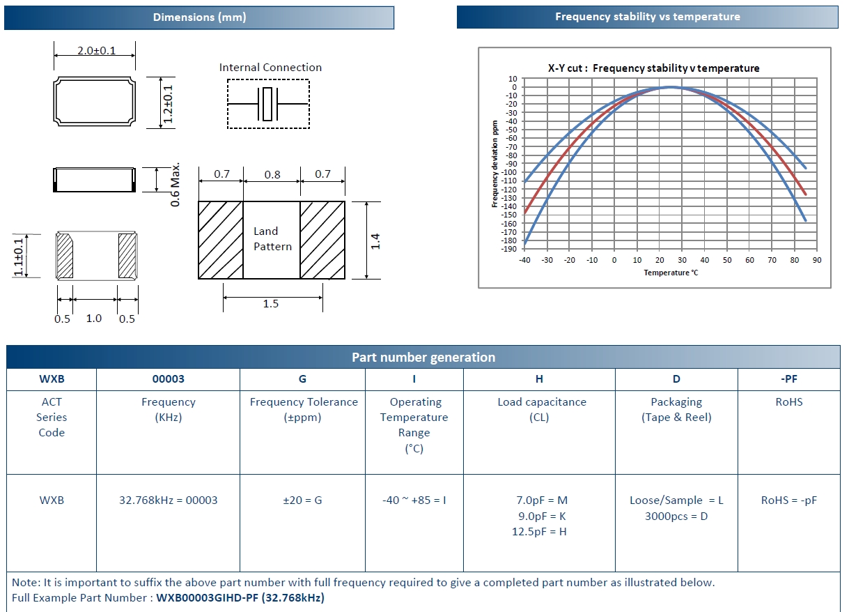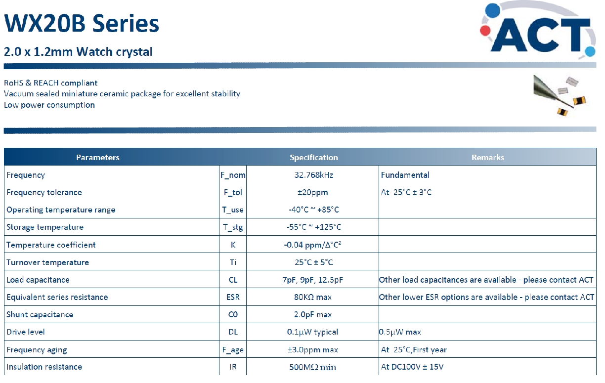 WXB00003GIKD‐PF,ACT32.768K晶体,6G路由器晶振,WX20B无源谐振器 参数表