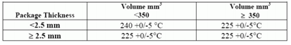 在正常气候条件下(+5°C至+35°C,相对湿度为40%至75%),可焊性得到了一年的保证,然而,通常足够的可焊性(取决于工艺)也会维持更长的时间.如果有疑问,超过一年的部件应该进行可焊性测试.SMT贴片晶振部件的适用回流焊接曲线如图1所示,温度和时间的相关参数根据IPCJ-STD-020C在表1和2A/2B中定义.