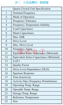 儘管結構簡單,但是石英晶振的特性還是有難以理解的一面.要理解石英晶體,從它的外觀入手應該是最簡單的.石英晶體一般的樣態如表三所示.