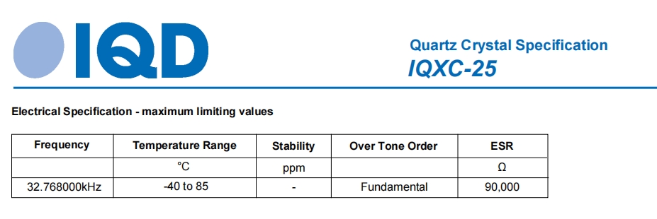 2012mm,32.768kHz-IQXC-25-20/-/-/12.5,IQD数字显示晶振,IQXC-25晶振 参数表