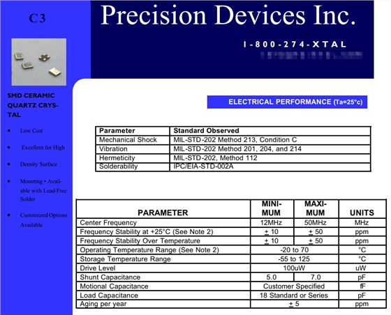 C3系列平板电脑晶振,3225mm,PDI小封装晶振,4脚无源晶振 参数表