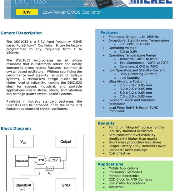 | DSC1033CI1-033.0000 | Microchip振荡器 | DSC1033 | MEMS (Silicon) | 33MHz | 3.3V |