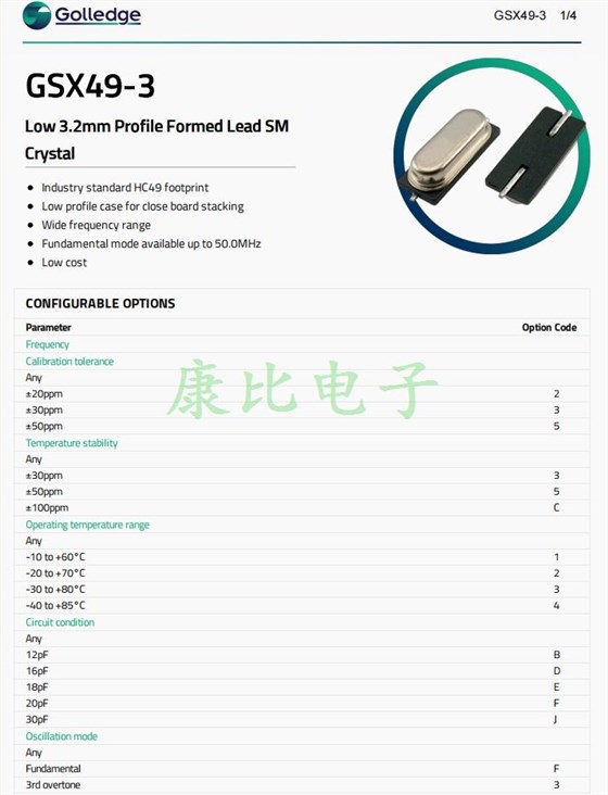 同时,它具备很强的抗干扰能力。在复杂的电磁环境中,能有效抵御外界干扰,减少频率漂移,保证信号的准确性和稳定性。无论是在智能手表的精准计时,还是无线耳机的稳定连接等应用场景中,GSX49-3晶体都能以稳定性能保障设备正常运行。
