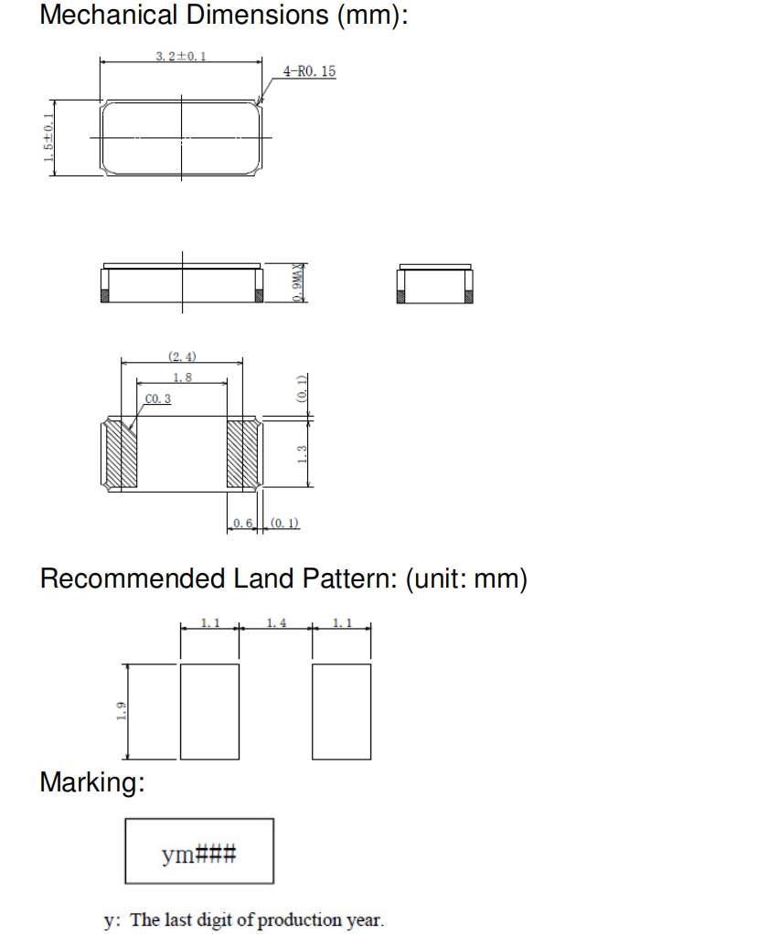 TZ1510A,TST音叉晶体,3215mm无源晶振,32.768KHZ计时器晶振 尺寸图